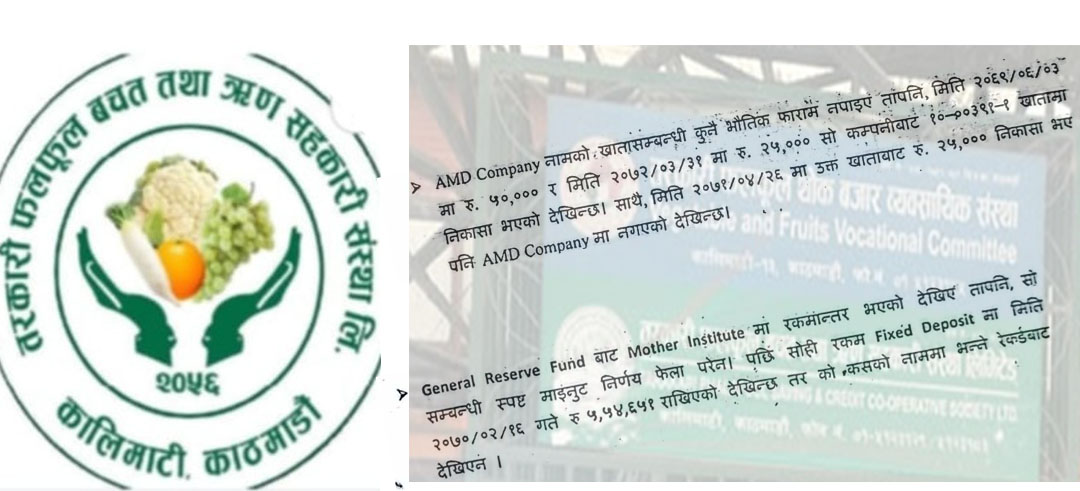 काठमाडौं । कालिमाटीस्थित तरकारी फलफूल सहकारी संस्था लिमिटेडमा कुनै पनि भौतिक फाराम बिना नै कम्पनीको नाममा खाता खोलेर शंकास्पद कारोबार गरेको पाइएको छ ।