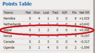 त्यस्तै प्रतियोगितामा ६ अङ्क जोडेको नेपाल रनरेटका आधारमा डिभिजन एकमा प्रवेश गर्नबाट वञ्चित बनेको हो । समान ६ अङ्क नै जोडेको नेदरल्यान्ड्सले आज युगान्डालाई सात विकेटले पराजित गरेपछि नेपाल डिभिजन एकमा प्रवेश गर्नबाट वञ्चित बनेको हो ।