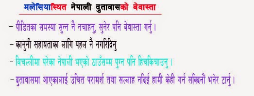मंसिर १ । रोजगारीका क्रममा मलेसिया पुगेका नेपालीहरु अलपत्र पर्नु, काममा ठगिनु तथा आपत विपतमा पर्दा बिचल्ली हुनुमा मेनपवारसँगै  दुतावासको पनि खोट देखिएको छ ।