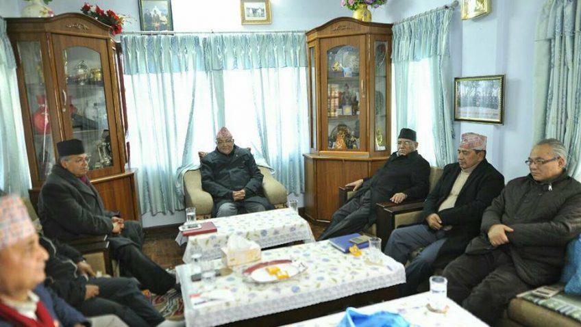 बैठकमा एमाले अध्यक्ष केपी शर्मा ओली, माओवादी केन्द्रका अध्यक्ष प्रचण्ड, नेताहरु झलनाथ खनाल, माधव कुमार नेपाल, बामदेव गौतम, नारायणकाजी श्रेष्ठ, रामबहादुर थापा ‘बादल’ र ईश्वर पोखरेल सहभागी थिए ।