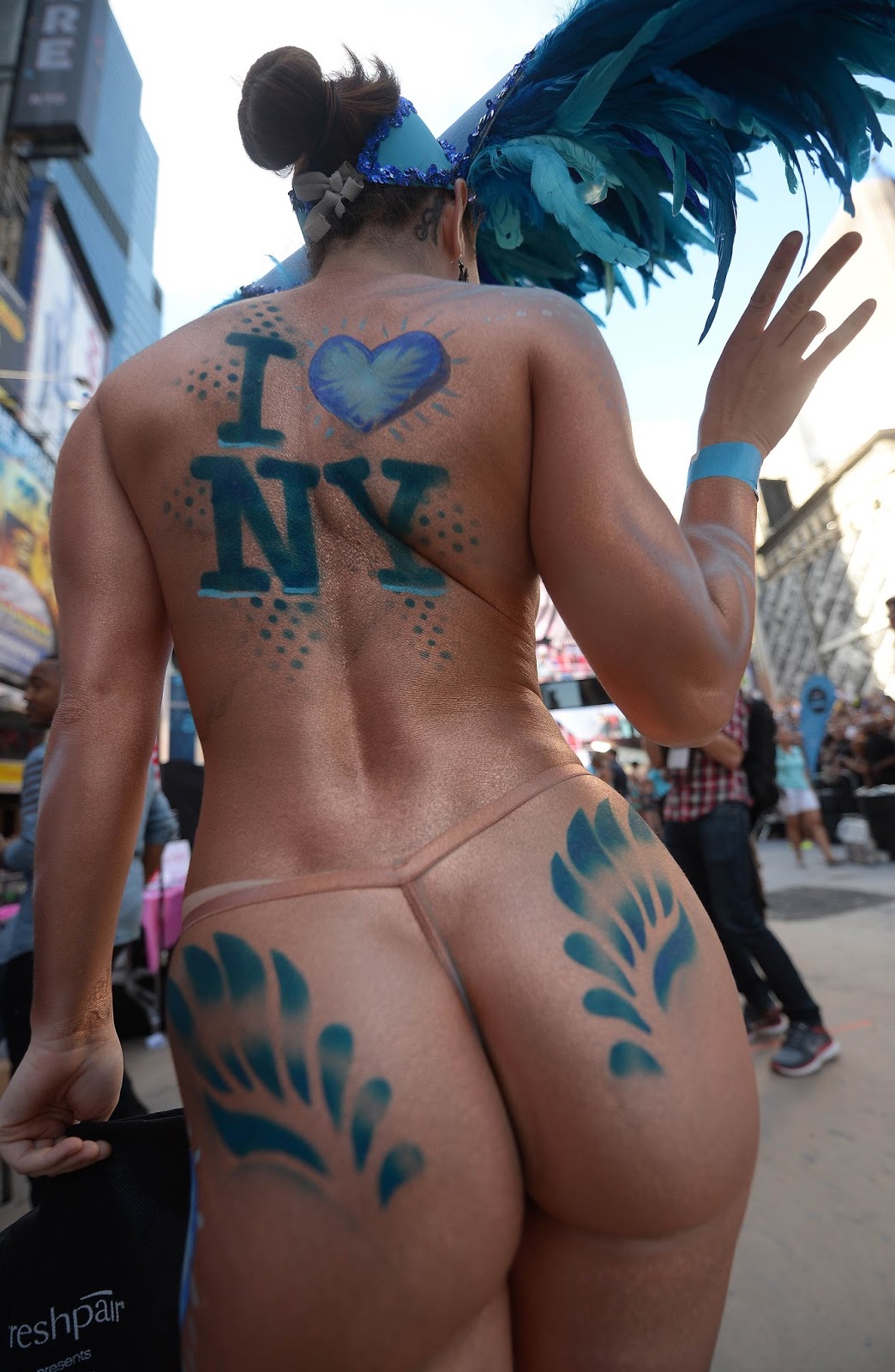 न्यूयोर्कमा टाइम्स स्क्वायरमा गिनिज बुकको वर्ल्ड रेकर्ड तोड्न टाटो प्रदर्शन गर्दै युवती । गिनिज बुकमा अहिले २२ सय ७० जनाले अन्डरवेयर टाटो प्रदर्शन गरेर रेकर्ड राखेका छन् । तस्बीरः एपीएफ