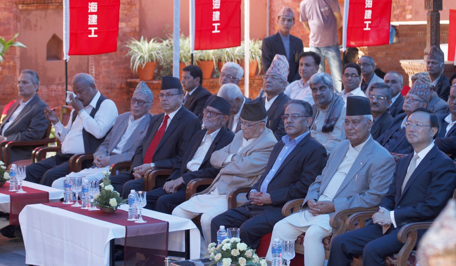 कार्यबहाक राष्ट्रपती परमान्नद झा र नेपालको औपचारिक भ्रमणमा रहेको बेला चीनको राज्य परिषद्का ‘स्टेट काउन्सिलर’ याङ जेइचीद्धारा संयुक्तरुपमा चीनको सहयोगमा निर्माण हुन लागेको कलंकी कोटेश्वर आठ लेनको सडक निर्माणको औपचारीक रुपमा उद्घाटन गर्दै । जेइची हिजै चीन फर्किएका छन् ।
