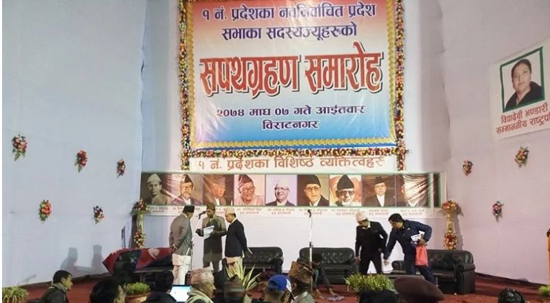 आइतबार (७ माघ) का दिन विराटनगरस्थित वीरेन्द्र सभागृहमा सपथ लिन प्रदेश सांसदहरु उपस्थित थिए ।